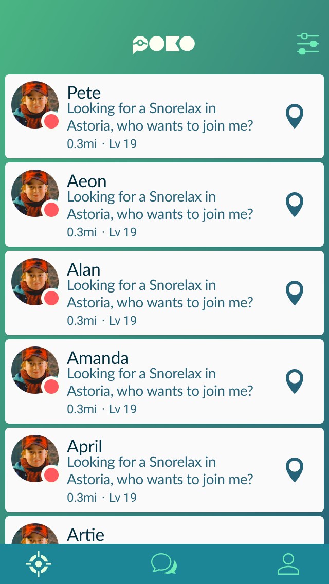 Poko allows Pokemon Go players to find and communicate with other trainers nearby. When Pokemon Go first launched it was a huge hit, but was lacking any kind social features. Trainers wanted a way to interact with others so they could coordinate battles and share resources and information. Poko aimed to fill this gap by providing a simple chat interface for Pokemon Trainers.